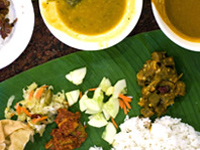 South Indian: The South Indian spread is well represented by the classic Gongura Mamasam, Royyalla Pulusu (sizzling prawn curry), Kakarakaya Pulusu (a bitter gourd preparation that uses a good dose of spice) and the more humble, but nevertheless lip-smacking, lentil-spinach dish of Palakura Pappu. Andhra Cuisine is distinct for its hot and spicy food with a range of chutneys, curries, meat preparations and pickles. One can also taste the cuisines of Karnataka (Udipi) and Tamil Nadu - the omnipresent dosas, idlis and vadas.